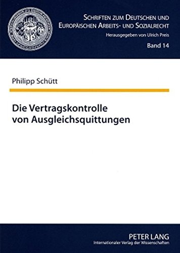 Book Die Vertragskontrolle von Ausgleichsquittungen (Schriften zum Deutschen und Europäischen Arbeits- und Sozialrecht) by ... Read onlineRead Unlimited Books Online GeBooks offers you million of titles across categories. ... Die Vertragskontrolle von Ausgleichsquittungen (Schriften zum Deutschen und Europäischen Arbeits- und Sozialrecht) By ... PDF download.